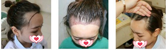 现在是植发一个月的情况,植发后血痂不要去抠,不建议自己洗头,建议术后一周去医院清理,关于种植后的区域怎么遮住,我们女生用刘海一盖就看不出来了。现在种上去的头发开始东倒西歪了,希望脱发期赶快过去,赶紧长出新头发吧。发际线调整了,脸也会看起来小很多。
