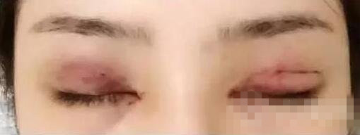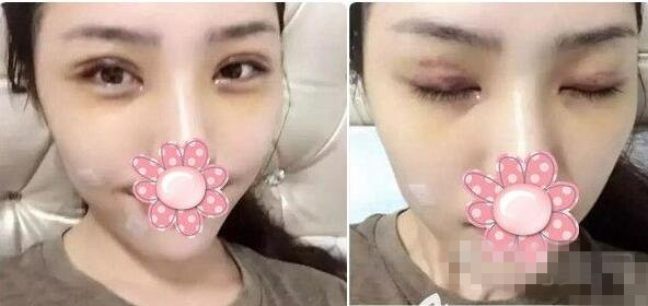 醒来后我就在病房里输液了,照镜子时看到眼皮上贴了纱布和胶带,眼角的地方特别肿,还有伤口在往外渗血。麻醉药失效的时候眼睛很疼,肿胀的感觉更加明显了。我觉得眼睛非常不舒服,但是医生说最好让伤口结痂后再撕掉胶带,以免引起伤口感染。